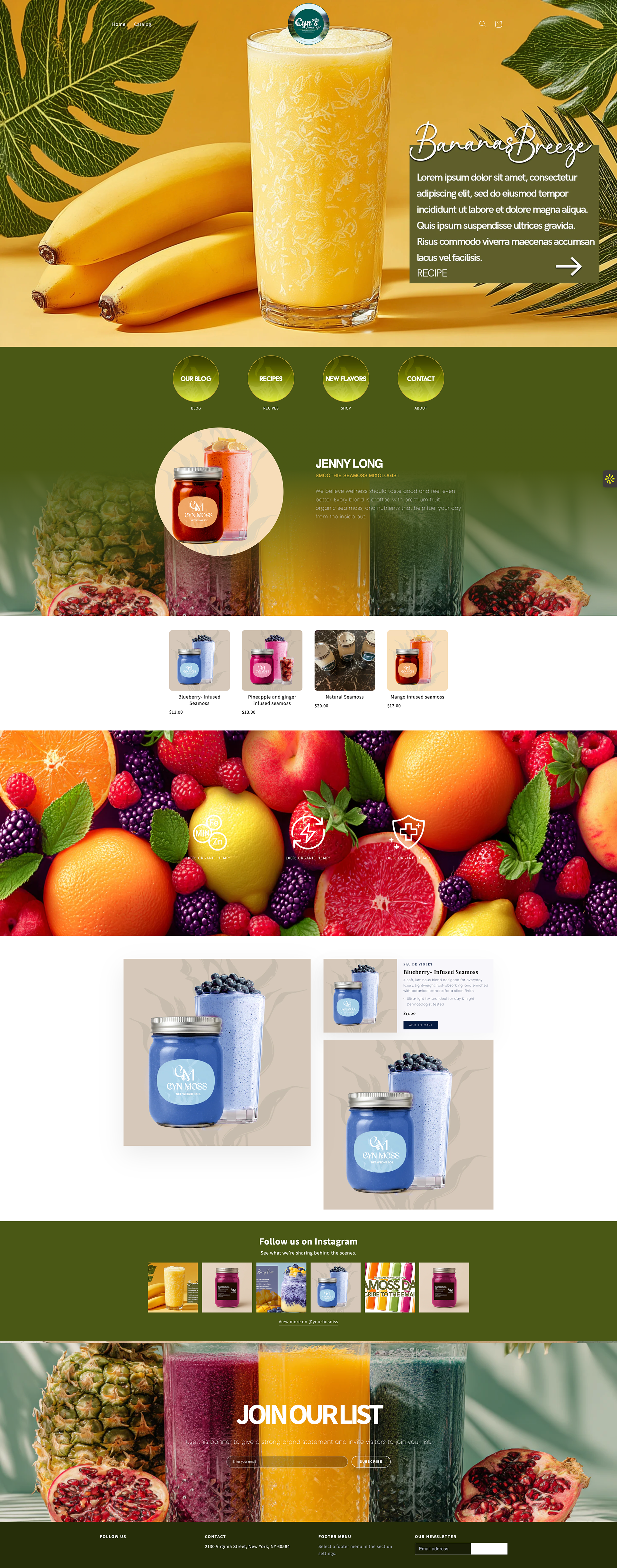 The visual direction of CYN MOSS was inspired by freshness, fruit vibrancy, and a tropical-meets-luxury sensibility. I wanted the brand to feel bright and energetic, but still elevated enough to stand apart from more generic health product brands.